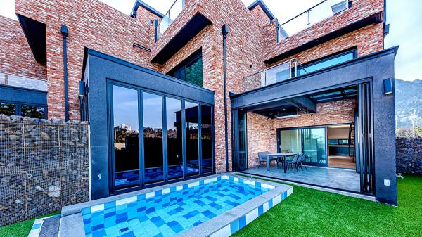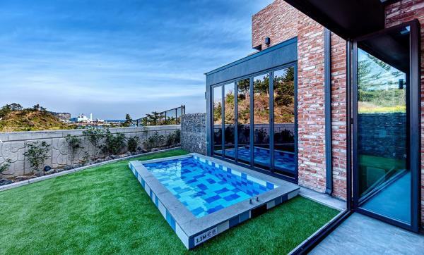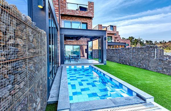 고벽돌과 징크의 절묘한 조화와 모던한 인테리어를 지향한 오션브릭 풀빌라는 개별 온수풀과 공동 온수 수영장을 보유한 독채형 풀빌라입니다.