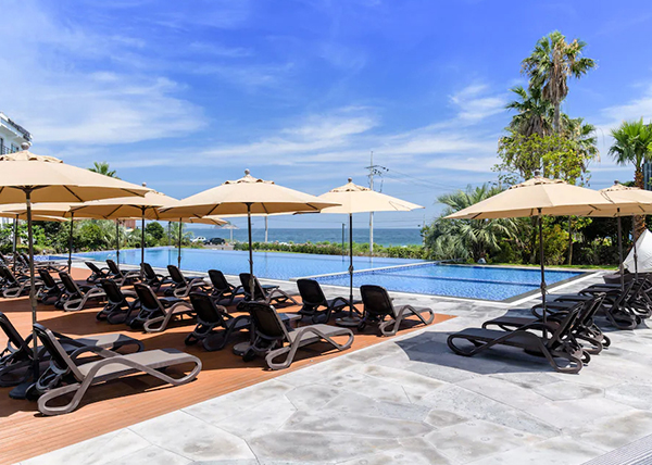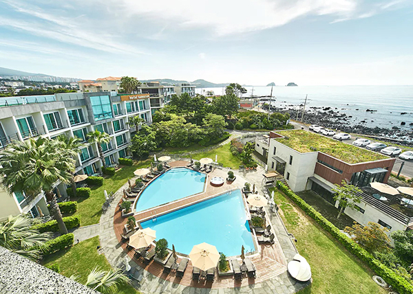 바다길 코스로 유명한 제주 올레 7코스가호텔 앞으로 이어지며 바다와 맞닿은듯한 인피니티풀이 이국적인 분위기를 자아냅니다.